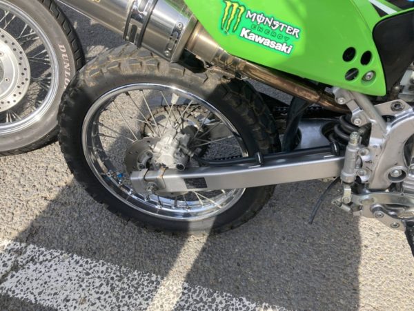 いつも林間コースを走っているKLXはフロントスプロケットを12Tまで落としてオフロードでの走破性に重きを置いていました。今回のプチツーリング参加のためにスプロケットを標準の14Tに戻してオンロードでの最高速度を確保しています。