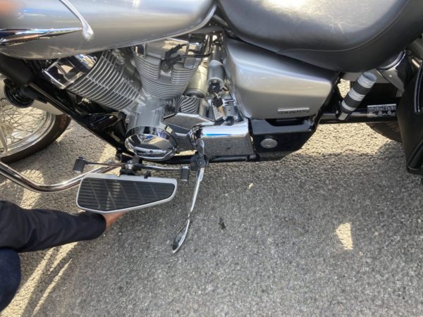 後で調べたらシャドウって247kg位あるのですね。更にサイドバックなんかも付けてあったのでざっと250kgってところでしょうか。