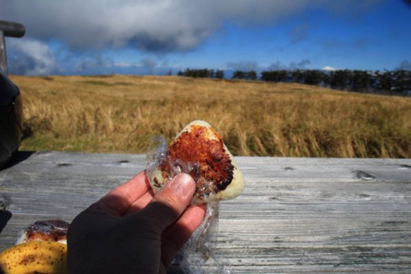 今日のプチツーリングはなるべくお金を使わないと決めていたのでお昼はおにぎりなのです。一人だし、この広くて空気が美味しくてのんびりと時間が流れる場所で食べるおにぎりと自家焙煎のコーヒーは数倍美味しいのです。