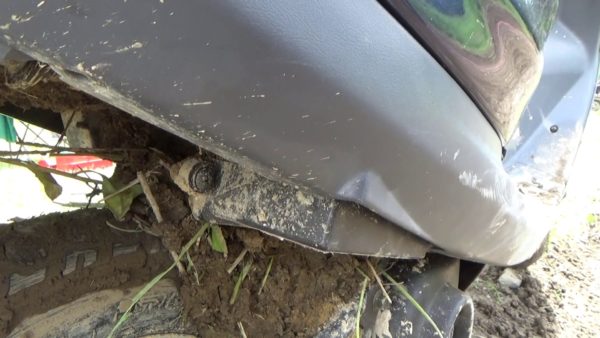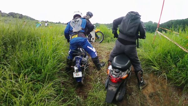 ここは車輪の小さいスクーター泣かせのドロドロでした。深い所では完全にお腹が着いてしまうのです。前後サスを延長しているにもかかわらずです。