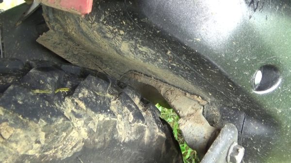 ギリギリの隙間になっています。これでは泥が詰まってタイヤが回らなくなってしまうのです。