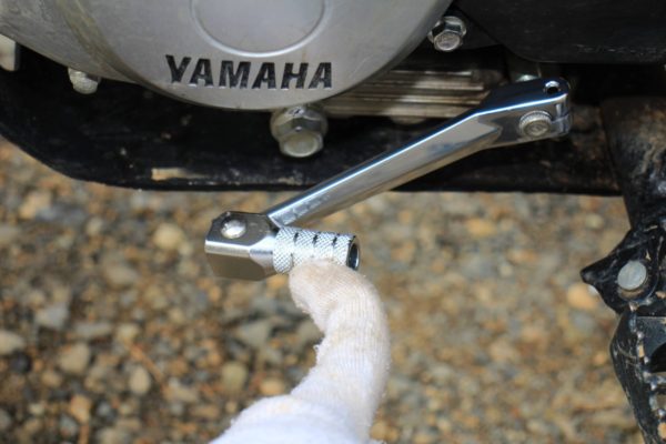 以前、YZ用として売られている可倒式チェンジペダル(製造元不明商品)に交換してしばらく乗っていました。最初は良かったのですが次第にガタが出てしまい、しっくり来なくなってしまいました。そこで再度物色をしていて気がついた事があります。