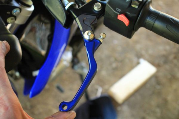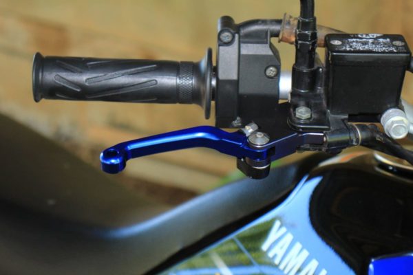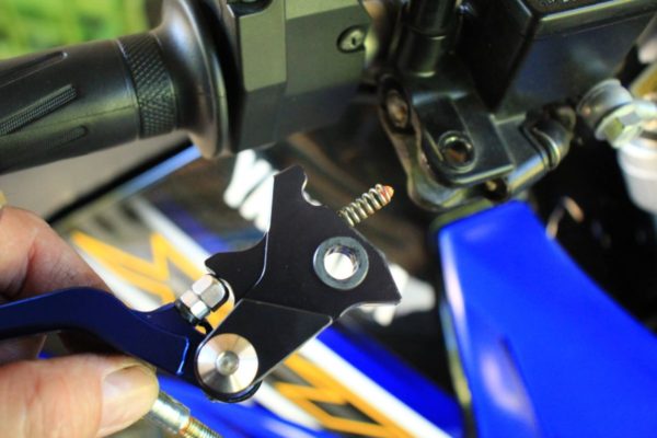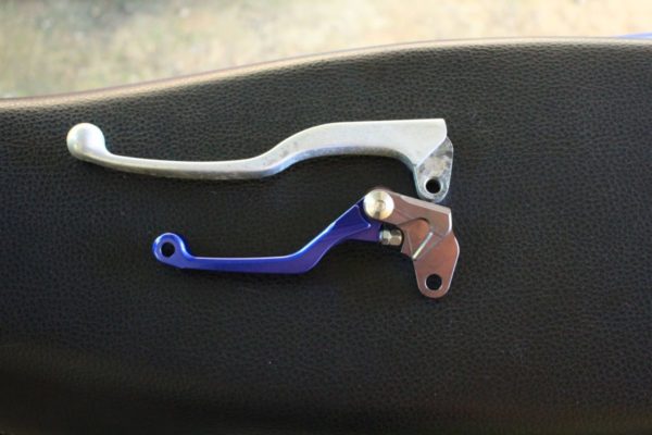 徐々に林道アタック用のマシンに仕上げて行くつもりなので「転倒するのが当たり前。」破損しにくいショートレバーでビヨーンと反対側に倒れるタイプを探していたところ、良いレバーが見つかりました。しかも安価で見た目も良くて機能も優れています。
