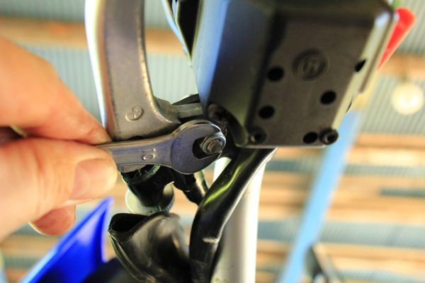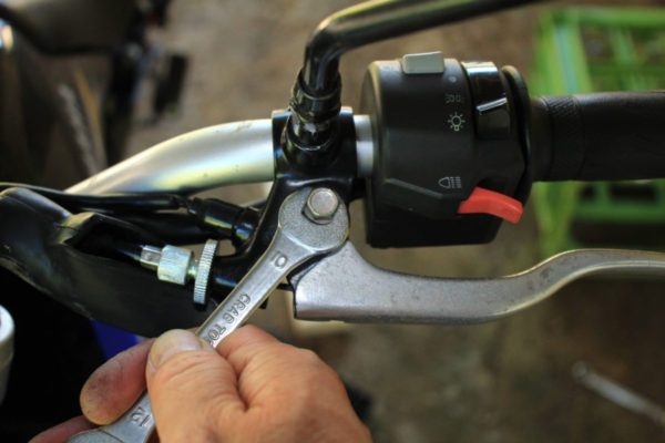 次に、クラッチレバーの付け根の裏側のナットを外します。10のスパナで大丈夫です。
