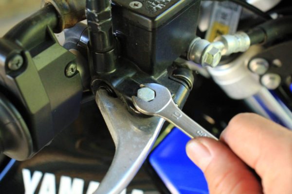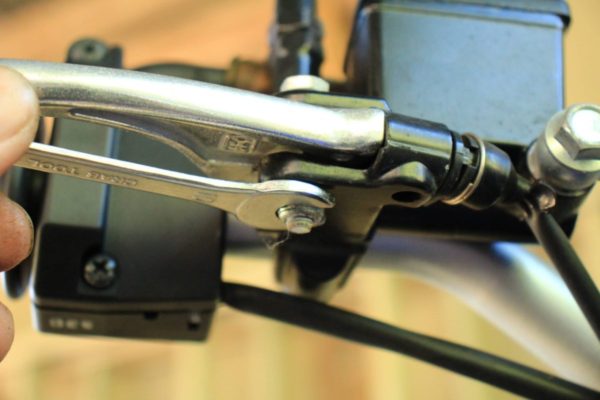 調整ネジを使って握り具合を微調整をするのはクラッチ側と同じです。
