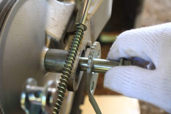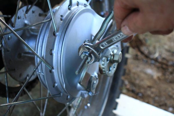 張りを調整したらアクスルナットをクッと締め付けておきましょう。締め付け過ぎは良くないのでクッと締める程度です。不安な方はトルクレンチを使ってください。