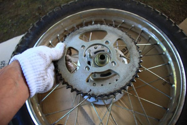 タイヤを外す手順はここまでです。いよいよドリブンスプロケットの交換です。