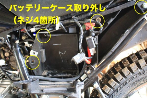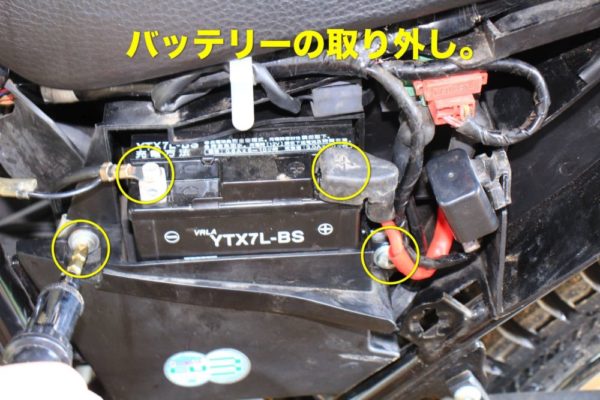 左サイドカバーを取り外し、バッテリーを取り外します。