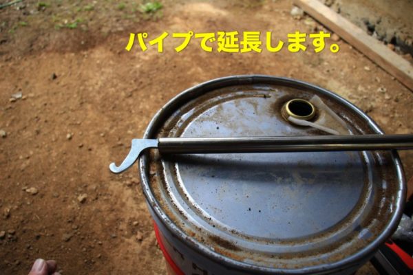 このままだと回しにくいので近くにあったパイプを差し込んで延長しました。