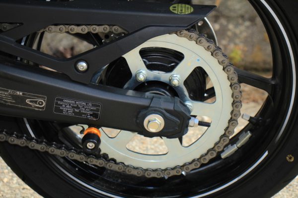 やたら大きいドリブンスプロケットが付いている上に鉄むき出しって感じで安っぽいのが気になります。