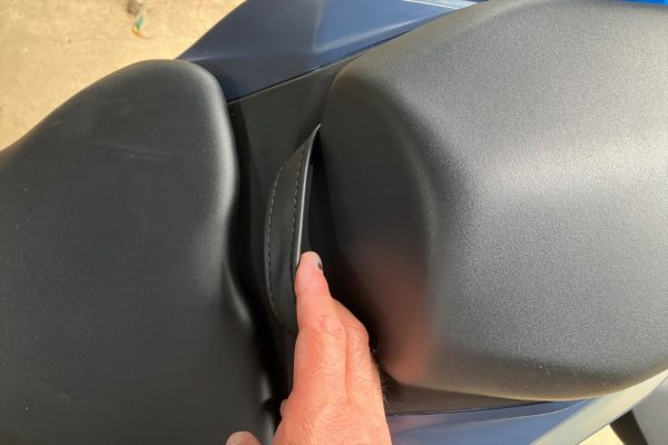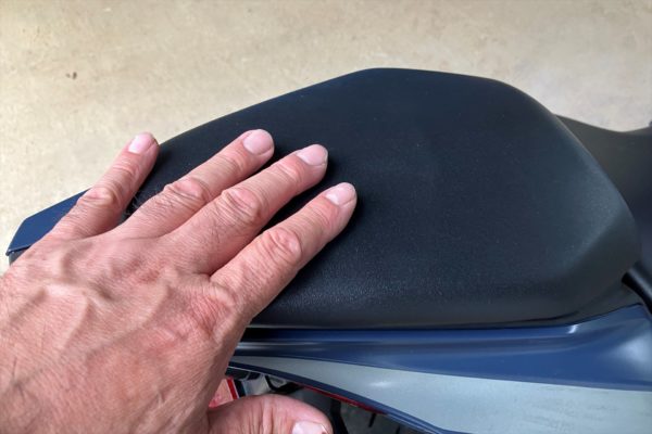 そもそも二人乗りをする事なんて前提に無いのでしょうね。私の手の大きさと比較してもわかるくらい小さくて薄っぺらいタンデムシート。しかも二段位高い位置にあるから実際座ってみると恐ろしく感じます。座り心地なんて最悪です。